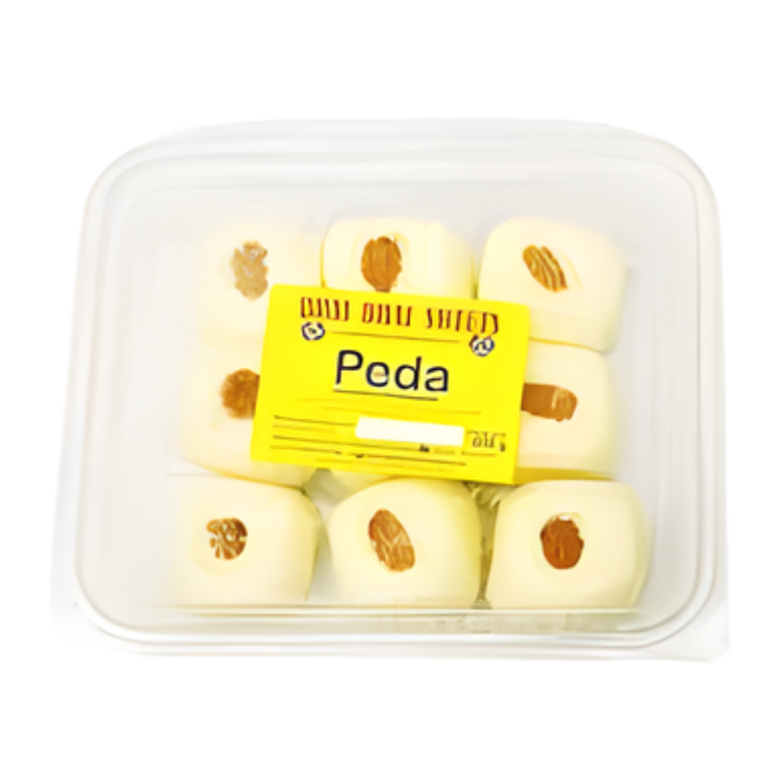 Traditional milk-based peda garnished with nuts. Soft and rich texture with classic Indian taste, perfect for festivals and special occasions.