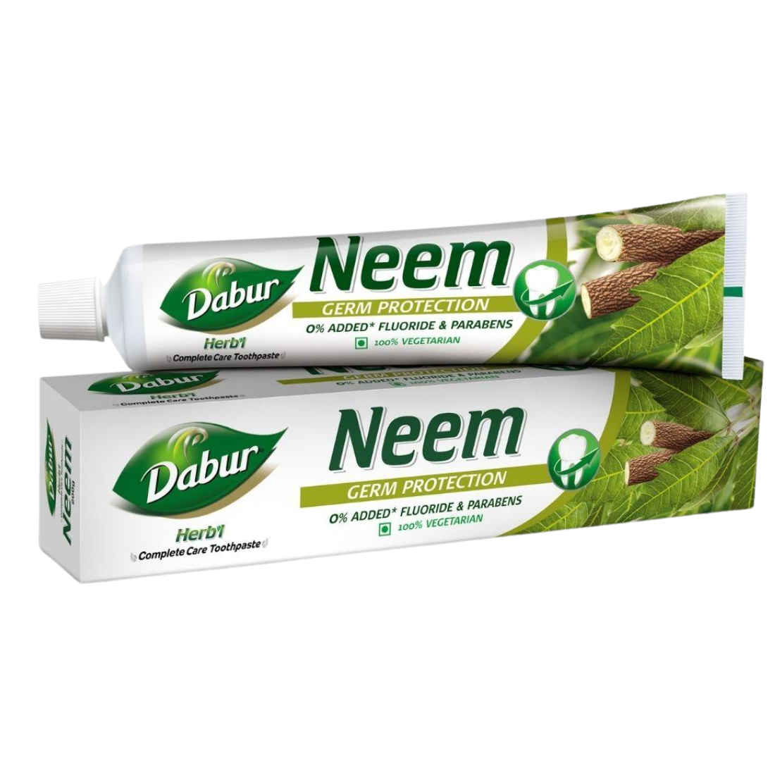 Herbal neem-based toothpaste with antibacterial properties for oral care.
