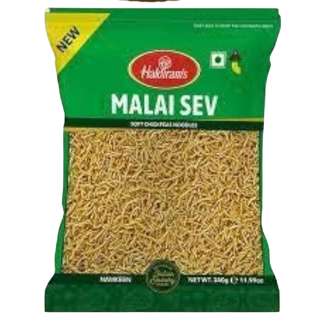 HALDIRAM’S Malai Sev is a fine and crispy snack made from gram flour with a mild, creamy flavour. Ideal for tea-time snacking or garnishing chaats, it offers consistent texture, authentic taste, and trusted quality.
