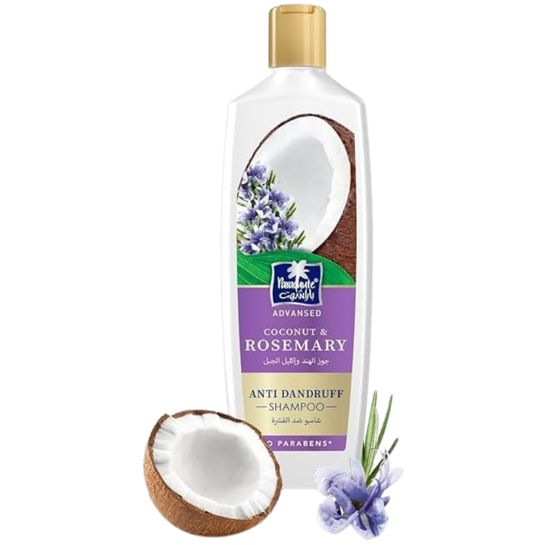 Anti-dandruff shampoo with coconut and rosemary extracts.