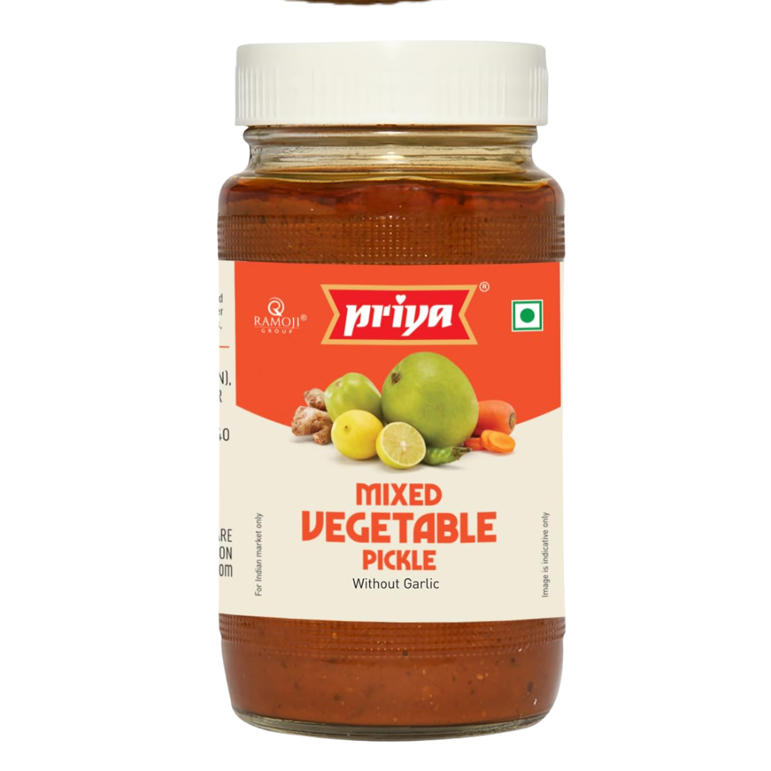 PRIYA Mixed Vegetable Pickle is a blend of assorted vegetables mixed with aromatic spices and oil. It provides a balanced spicy taste and is suitable for daily meals, enhancing flavour with traditional authenticity.