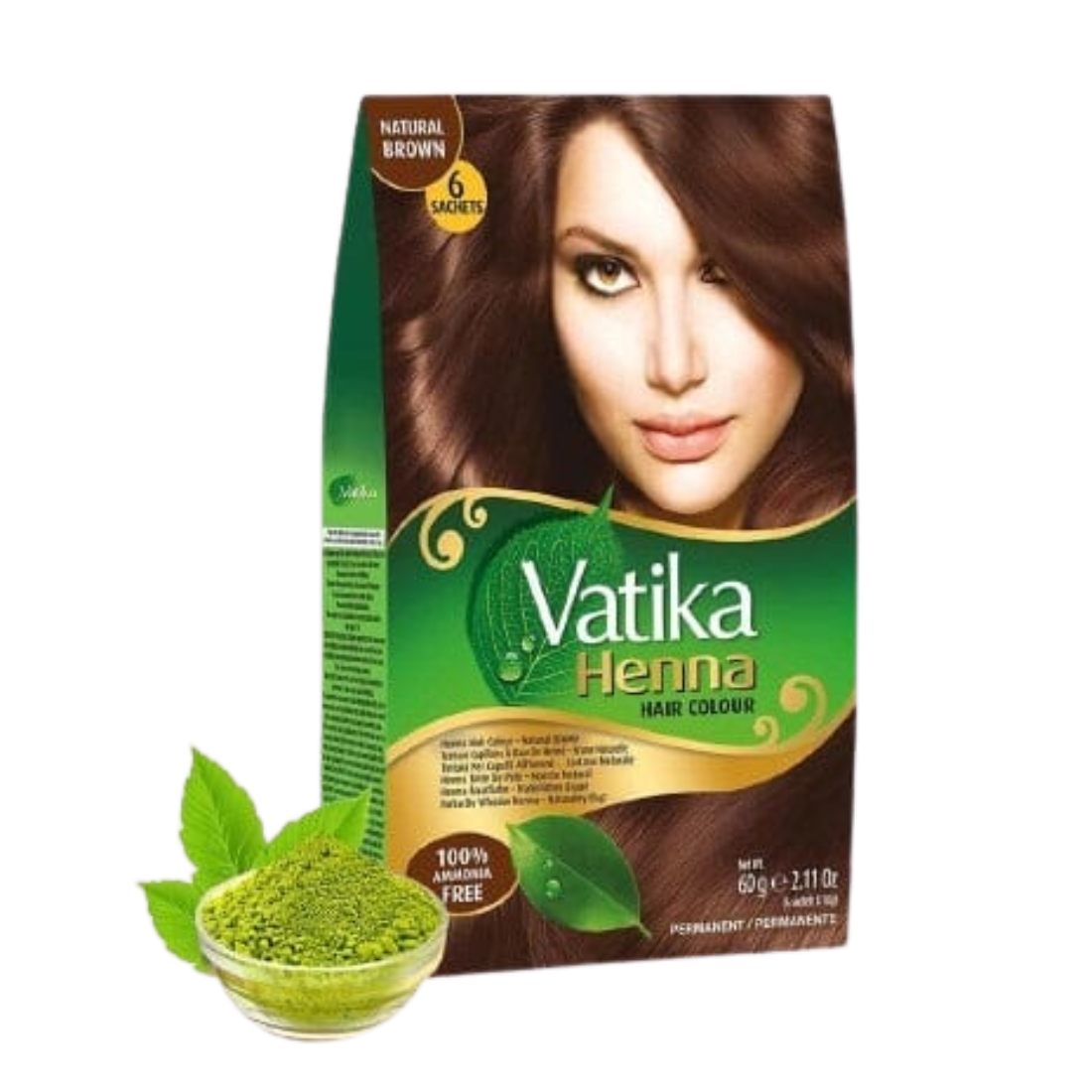 Ammonia-free henna-based hair colour for natural brown shade coverage.